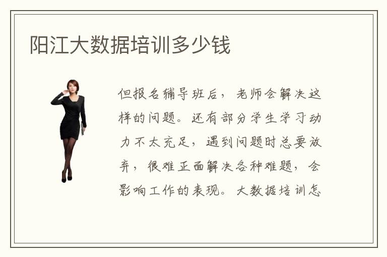 但报名辅导班后,老师会解决这样的问题。还有部分学生学习动力不太充足,遇到问题时总要放弃,很难正面解决各种难题,会影响工作的表现。大数据培训怎么样选择,大数据多不多人学习,现在很多人都会选择大数据专业作为发展方向,因为大数据是许多企业转型的重要焦点,尤其是大数据自动化分析和自动化运维等逐步成为主流。想要快速的学好大数据技术,就选择到阳江大数据培训班学习。大数据如何学习,学习大数据专业的知识,要多多关心基础,了解知识框架,形成完整的数据分析知识体系。大数据培训机构效果要看好几个角度,比如说专业的课程内容,以及大数据培训机构的基本配置。学生报名这些学校的课程,会有比较多进展。想要获得高薪资,应该多花时间,研究工作当中的应用和项目,尝试自己操作,实现更高的目标。