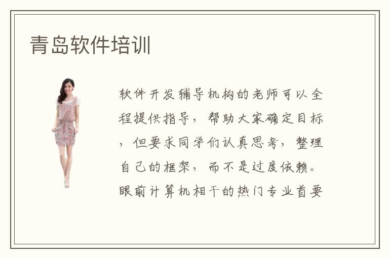 软件开发辅导机构的老师可以全程提供指导,帮助大家确定目标,但要求同学们认真思考,整理自己的框架,而不是过度依赖。眼前计算机相干的热门专业首要包罗了Java剧本设计、UI界面设计、计算机利用程序等等,而软件设计与开发专业是延外地域的重点培训专业,学生数目一日千里。但是得到软件培训机构的基础训练后,学生们可以深入理解很多重要的技术,掌握很多应用的课程。刚开始学习软件知识,很多同学都没有找到学习方向,不了解自身的不足,无法明确学习重点,因此进度非常慢,若想改变此类情况,一方面要多积累经验,另一方面也要主动了解青岛软件开发培训软件开发培训班哪个好,请教辅导老师,选择合适的学习途径。青岛软件设计与开发专业聚集了教育人材,尽力把学生的死板的学习教诲向乐趣讲授挨近,使得学生的注重力更加会合。