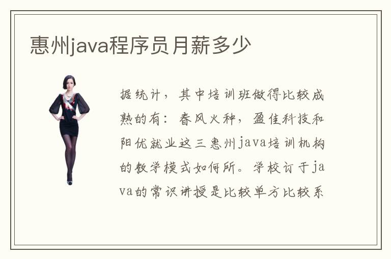 据统计,其中培训班做得比较成熟的有:春风火种,盈佳科技和阳优就业这三惠州java培训机构的教学模式如何所。学校订于java的常识讲授是比较单方比较系统的,但是培训机构为学生开设的课程是比较专业的,重视培育学生脱手才能,议决实现企业具体的设计项眼,取得丰硕贵重的java实践经历。一般专业的java培训机构会为学员开设四个月左右的课程,从基础知识培训到实践项目开发,让各位学员在四个月内都能精通java。我想达内作为眼前it行业的抢先教育品牌,一流的师资气力,一流的讲授品质,一流的学习装备,努力于培育it行业的精英人材,包罗php以及java等等方面,达内都是人人作为java培训机构的首选。惠州Java培训班推出一系列热门专业,帮助学生自在选择,寻觅到合适本身的学习使命。