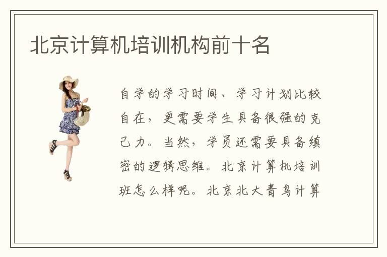 自学的学习时间、学习计划比较自在,更需要学生具备很强的克己力。当然,学员还需要具备缜密的逻辑思维。北京计算机培训班怎么样呢。北京北大青鸟计算机培训学校在创建之初就遭到了本地国民的相信,我想最首要缘由还得因为北大青鸟总部杰出的口碑吧。北京计算机培训计算机培训机构排名你知道吗。当然,随着计算机业的发展,现在的计算机培训机构有非常多,那么如何选择好的计算机培训机构呢。不过有些学生平时不太上心,也不太重视课程内容,学习的进展慢,无法达到个人预期的实际目标,因此常常会很迷茫。计算机培训机构排名情况靠谱吗。北京计算机学校把学生的学习兴趣与课程教学联系起来,因此学生能够集中精神和注意力,投入更多的精力在计算机技术的学习上。