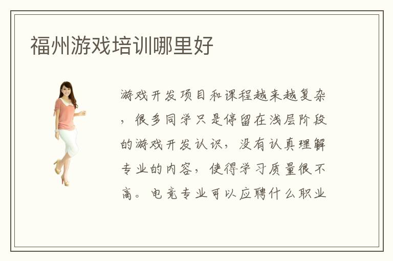 游戏开发项目和课程越来越复杂,很多同学只是停留在浅层阶段的游戏开发认识,没有认真理解专业的内容,使得学习质量很不高。电竞专业可以应聘什么职业,电竞专业的技术人员可以应聘很多种岗位,比如电竞游戏设计师、电子游戏开发专员、游戏美工技术人员。游戏小班教育怎么样,小班教学的特色比较鲜明,首先在于学生拥有更多机会与老师讨论,老师也能用更多精力照顾每位学生,推出个性化教学方案,使大家深入了解游戏设计的内容。这时可以考虑福州游戏设计培训的课程,也许效果会更好。据统计,目前我国市场对于软件开发方面的人才需求每年超过数十万;在游戏行业发展如此火热的今天,各大高校也开设软件开发方面的专业,不少培训机构有关于软件开发的培训教学。