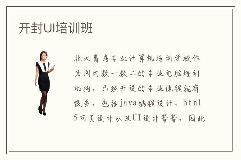 北大青鸟专业计算机培训学校作为国内数一数二的专业电脑培训机构,已经开设的专业课程就有很多,包括java编程设计、html5网页设计以及UI设计等等,因此开封UI培训班最值得大家信赖的还是开封北大青鸟UI培训班啦。开封北大青鸟UI培训班致力于培养各方面全面发展的优秀UI设计人才,注重理论基础概念与实践项目操作的双重培养,让广大UI设计专业学子可以得到更好的技能培训。