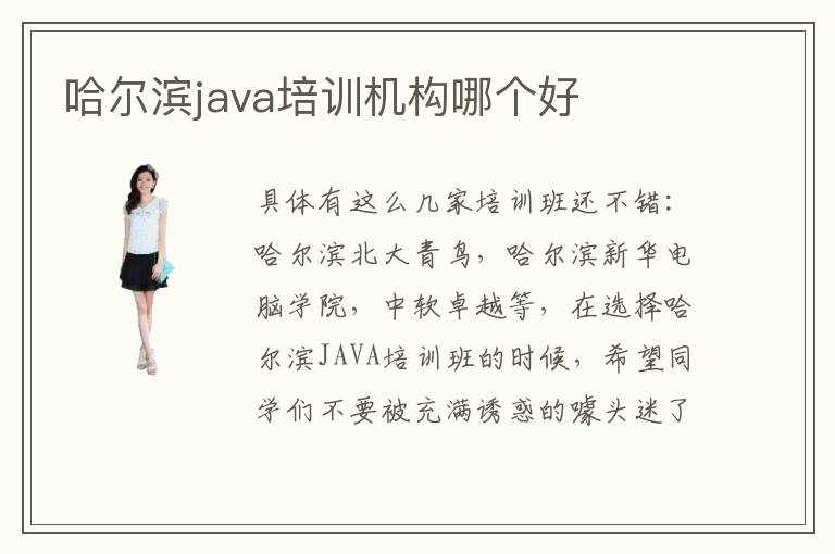 具体有这么几家培训班还不错:哈尔滨北大青鸟,哈尔滨新华电脑学院,中软卓越等,在选择哈尔滨JAVA培训班的时候,希望同学们不要被充满诱惑的噱头迷了方向,而是要进一步关注其内在,比如说,该培训班是否在行业具有知名度和自己的品牌,在教学资源上,是否属实;培训班毕业生和用人单位是否对该培训班给予了肯定的评价,这些都是考察一所培训班是否正规办学的关键所在。如果实在是没有办法去识别,可以通过一些有经验的同学进行介绍,那么就能够避开各种劣质的乱收费的培训机构。很多学生在学习java编程的时候,总是三天打鱼、两天晒网,存在学习太多的问题,没有认真学习,导致学习的质量并不是特别高。Java的课程内容虽然不难,但是大家也要懂得各项应用的能力提升方法,当然通过自学确实有难度,尤其是对于没有接触过这些专业领域的学生,要想得到更好的发展前景,就不能够忽略掉各项应用的实力。