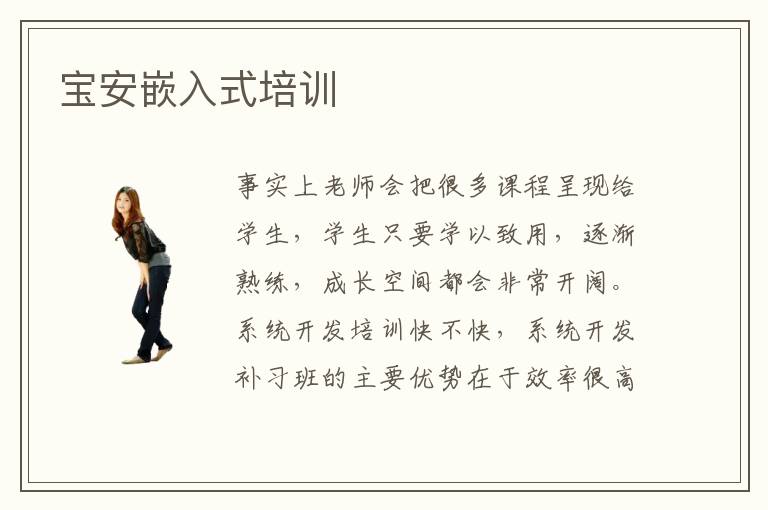 事实上老师会把很多课程呈现给学生,学生只要学以致用,逐渐熟练,成长空间都会非常开阔。系统开发培训快不快,系统开发补习班的主要优势在于效率很高,许多学员报名补习班之前,学习进度都太慢,基本找不到学习方案,因此常常遇到很多难题。大家只要有时间,都可以与老师预约,在手机或电脑面前上课即可。而且有问题要马上提出,这样老师就会给予更加清晰解答,学生的学习过程也会有深刻的印象。在软件部分一般会包括运行的环境以及软件的操作系统,而硬件部分主要包括信息处理器、通信模块以及储存器等等方面。嵌入式软件开发技术有点复杂,要求比较高,有的同学的学习经验不丰富,或者应用的水平很有限,都很难达到预期的标准。宝安嵌入式培训学校可根据大家的喜好和技能需求,设计学习方向,安排重点课程,提高学习效率。