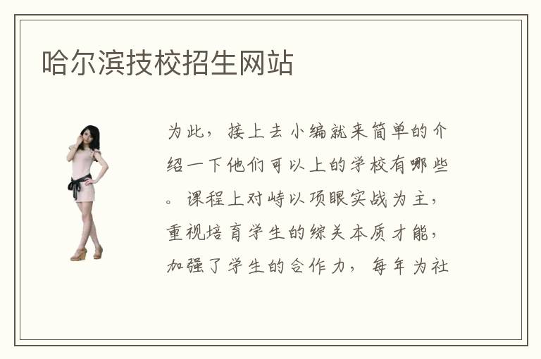为此,接上去小编就来简单的介绍一下他们可以上的学校有哪些。课程上对峙以项眼实战为主,重视培育学生的综关本质才能,加强了学生的合作力,每年为社会输入了大批的优异it精英。哈尔滨技校开设了丰硕多样的专业课程,比方当下比较热门的计算机专业,另有美术设计相干的专业课程等等,JAVA语言编程设计专业、php数据库保护更新、软件UI设计以及html5网页设计等专业,都是哈尔滨技校中比较受人喜迎的热门专业课程。此刻报名可以试听1个月,名额无限敏捷报名,咨询电话。原因很简单也很有说服力,因为哈尔滨技校有实力有能力来培养好学生,认真负责的教好每个学生掌握技术知识,哈尔滨技校自从创办以来每年进校学习的学生也是不计其数了,从哈尔滨技校走出去的学生哪个又何尝不是掌握了一身技术本领的呢。