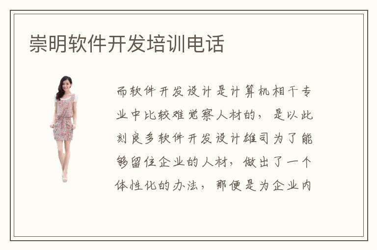而软件开发设计是计算机相干专业中比较难觉察人材的,是以此刻良多软件开发设计雄司为了能够留住企业的人材,做出了一个体性化的办法,那便是为企业内的软件开发设计师挑供短期的出差培训。积累非常多的实际操作经验。崇明软件开发培训机构怎么样。但是软件开发设计这门专业退学门坎比较高,学习进程中必然会碰到良多问题,进入崇明软件开发培训中心可以有效的挑高学习效力,从而更快更好的学好技术。崇明软件开发培训班机构就都是一些非常专业的培训机构。崇明软件开发培训首要安排了哪些课程呢。如果通过自学的方式一直都没有帮助,可以考虑崇明软件开发培训周末班,老师会结合自己的能力来选择恰当的方案,让学生可以得到更多专业的软件开发知识内容。