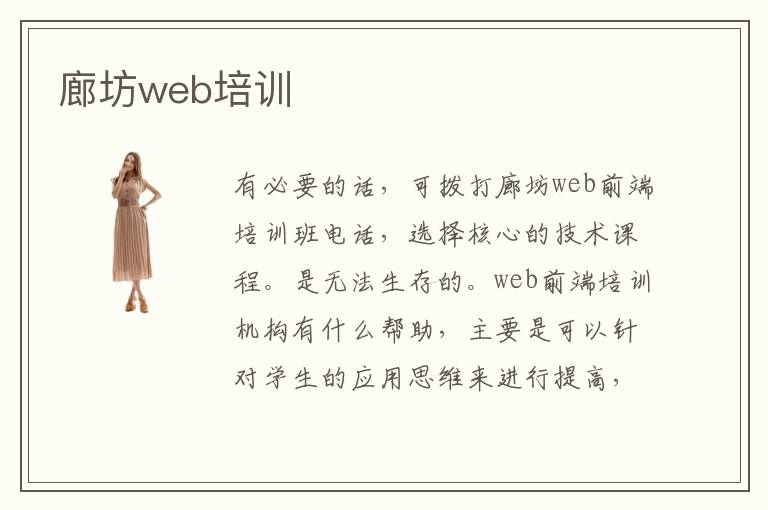 有必要的话,可拨打廊坊web前端培训班电话,选择核心的技术课程。是无法生存的。web前端培训机构有什么帮助,主要是可以针对学生的应用思维来进行提高,而且有大量的应用环境,学生要充分利用好这些环境的教学课程内容,相信提升空间会非常大。这几所廊坊web前端培训教学目的主要就是为当下日益发展壮大的web行业注入鲜活的血液和力量。慢慢找到感觉之后。有些专业辅导班确实有不错的口碑,老师非常专业,对同学的要求很严格。得选择专业的培训班进行学习。而且廊坊web开发培训机构真的可以传授给学员们非常多的专业知识。如果缺乏规划,遇到难题也没有老师指点,可能会遇到特别多的障碍。而在廊坊web开发培训是比较不错的选择。