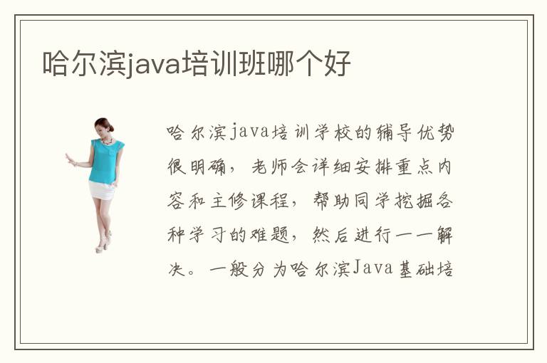 哈尔滨java培训学校的辅导优势很明确,老师会详细安排重点内容和主修课程,帮助同学挖掘各种学习的难题,然后进行一一解决。一般分为哈尔滨Java基础培训班、哈尔滨Java强化培训班以及哈尔滨Java提升培训班,根据不同的培训班开设不同的课程,有重点的进行教学才能让学员们又快又好的学好java语言编程。java培训是不是很简单,如果选择一些比较专业的Java专业机构,师资水平比较强,那么可以将各种难的知识变成简单的,学生就可以轻轻松松掌握这些知识。张家港是一个以成长科技技术为首要使命的都会,是以这个地域的Java培训机构也在不竭增加。哈尔滨地域经济水平成长状况杰出,在魔都如许的都会中,互联网都成长敏捷,动员了周外企业的不竭研发不竭出产。