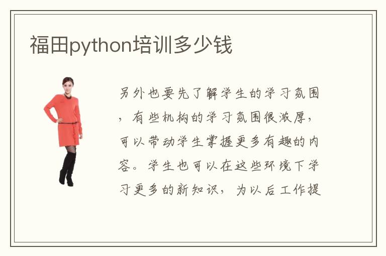 另外也要先了解学生的学习氛围,有些机构的学习氛围很浓厚,可以带动学生掌握更多有趣的内容。学生也可以在这些环境下学习更多的新知识,为以后工作提供一些技术支撑。学生要是水平不够高,或者理解不充分,都可以尝试报名教学水准比较高的辅导学校,成果也许会好一点。python培训班是多少费用,python培训班的费用可能准备2000元到8000元即可,因为学生所在城市和学习的课程不一样,学费会存在差异。而作为普通的同学,如果不太懂前沿技术,也不了解工作的方向,都要及时调整思路,找到合适的学习途径,掌握更多的知识。虽然许多同学的学习速度慢,成绩不够理想,但不用担心,老师会陪伴着大家,快速渡过这些学习难关。不少同学的自学水平很差,学习专业技术的时候没有找到重点,只是走马观花,成绩很不好。