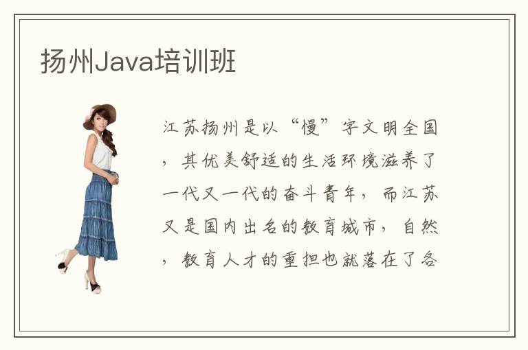 江苏扬州是以“慢”字文明全国,其优美舒适的生活环境滋养了一代又一代的奋斗青年,而江苏又是国内出名的教育城市,自然,教育人才的重担也就落在了各个城市身上。扬州Java培训班由此开设。扬州哪里有优秀的Java培训机构呢?扬州Java培训课程内容究竟有哪些?扬州Java培训学校专业程度怎么样?扬州Java培训学校聘请专业的教学老师,教导学生。