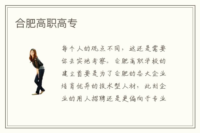 每个人的观点不同,这还是需要你去实地考察。合肥高职学校的建立首要是为了合肥的各大企业培育优异的技术型人材,此刻企业的用人招聘还是更偏向于专业技术培训学校的结业生,大学生曾经不是那末抢手了。而很多人在选择高职院校的时候,第一个考虑的就是费用,那么洛合肥职院校贵不。面对这样的情况,大家如果想要让小孩子到高职院校读书,当然要对比不同学校的优缺点,包括学校的校风,教育资源,配套设施,学生的氛围,老师的教育经验等等进行综合的对比。合肥高职院校是很多在高考过程中落榜的同学选择加入的培训机构,通过独特的教学模式以及专业化的课程培训,顺利为各行各业的发展培养了很多优秀的技术型人才。合肥高职学校在建立之初是不克够被大大都人接管的,泛博市平易近都以为高职技术培训学校的专业课程培训讲授是不靠谱的,合肥高职学校天然也不破例。