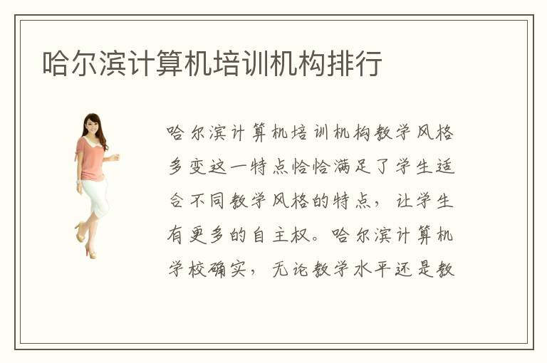 哈尔滨计算机培训机构教学风格多变这一特点恰恰满足了学生适合不同教学风格的特点,让学生有更多的自主权。哈尔滨计算机学校确实,无论教学水平还是教学质量方面都是非常不错的。哈尔滨计算机培训是以计算机新时代、计算机新技术为培训理念。怎么遴选合适的哈尔滨计算机培训学校能力到达最好的结果。为了保障学习成果,同学也适当报名哈尔滨计算机学校,了解每个学校的教学水准、专业的能力、辅导的优势,然后再挑选合适的补习班。计算机培训学校是现在比较受欢迎的培训学校之一,由于计算机的新兴发展,带动了国内的许多计算机培训学校的进步。这些哈尔滨计算机学校都注重哪方面培养呢。哈尔滨察布计算机培训学校拥有国内最权威的授课团队,努力为学员们营造一种轻松热情的学习氛围,主张因材施教的教学方式,这样的教学模式更具有针对性。