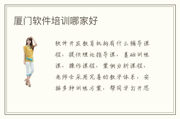 软件开发教育机构有什么辅导课程,提供理论指导课,基础训练课,操作课程,案例分析课程,老师会采用完善的教学体系,安排多种训练方案,帮同学打开思路,积累更多经验,从而得到更多的进步。因为有些软件开发机构确实是可以带来很优质的应用,学生自己除了自学之外,还可以通过软件开发培训机构的帮助来提高自己的创新和应用能力。不少同学都很在意老师的水平,也会花很多时间筛选师资力量雄厚的教育机构。厦门软件设计专业好学吗。软件开发培训成果如何,软件开发培训机构的成果一般不错,许多同学报班之前,都没有任何基础,也没有学习方向,但报班之后,个人的掌握进度会加快,学习质量也更高。软件开发培训后容易就业吗,软件开发补习机构的就业率比较高,许多学生都能找到满意工作,在岗位上充分体现出优势。