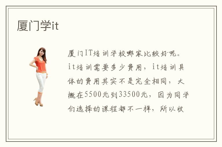 厦门IT培训学校哪家比较好呢。it培训需要多少费用,it培训具体的费用其实不是完全相同,大概在5500元到33500元,因为同学们选择的课程都不一样,所以收费会有波动。厦门IT培训学校在科技水平发展的同时也在不断地完善自己的教学水平和教育模式,努力跟进时代,紧密切合互联网时代的要求,在培养人才方面也是极度用心,为学生的学习分配不同的教学方案,这样既具有针对性,又能够放大学习效率。厦门达内IT培训学校作为厦门市十大最靠谱的专业计算机培训学校之一,在厦门市民的心目中有着不可替代的重要地位,也顺利成为了厦门市民在选择靠谱计算机培训学校学习时的首选平台。厦门IT培训学校主意的是一对一、点对点的讲授形式,如许的讲授形式可以使得教员更清晰学生们的学习进度,从而拟定最合适他们的专业学习课程,也就挑高了学习效力。