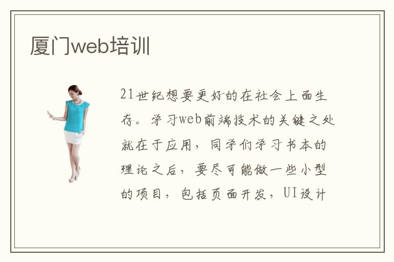 21世纪想要更好的在社会上面生存。学习web前端技术的关键之处就在于应用,同学们学习书本的理论之后,要尽可能做一些小型的项目,包括页面开发,UI设计网络,前端服务器开发等。爱前端培训学校感化首要在于教育的速率很快,培训的眼标非常明白,非常正视实践应用。为了让自己学习效率更高,也能够学习更快,可以考虑优质的前端培训课程,老师会带领各种不同学生,取得更加优异的成绩,也能在社会上有更强的就业优势。假如同学成绩很差,专业水平不高,不妨参与机构的课程,相信会有许多收获。培训周期一般6-8个厦门web开发培训培训机构办学模式月。如果是高阶项目,往往就会比较适合水平比较高、应用能力比较强的学生。吸引着很多人都想要从事web前端行业。