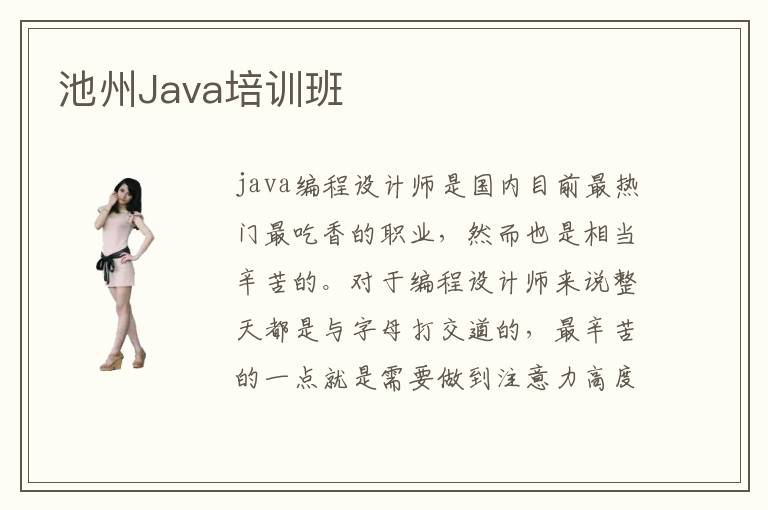 java编程设计师是国内目前最热门最吃香的职业,然而也是相当辛苦的。对于编程设计师来说整天都是与字母打交道的,最辛苦的一点就是需要做到注意力高度集中,如果出现了一点错误,在茫茫“代码大军”中寻找那一个小小的字母工程量实在是太大了。因此java编程设计师需要不断提升自己的专业技能,选择池州Java培训班进行自我技术的提升就是一个不错的渠道。