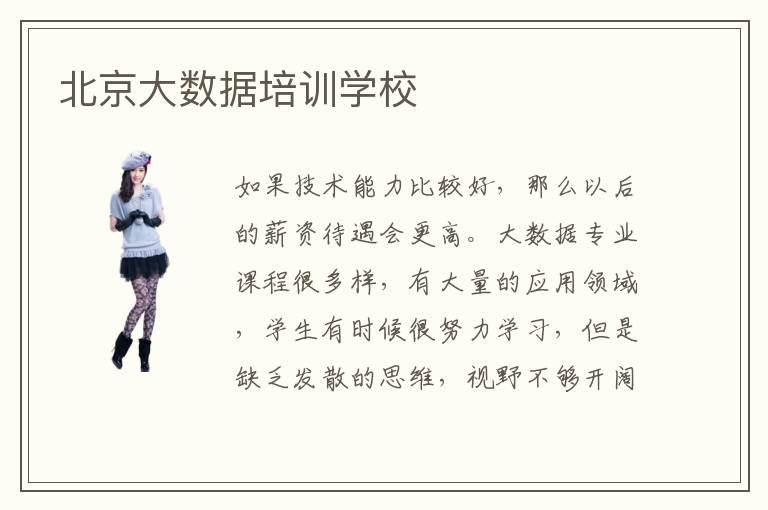 如果技术能力比较好,那么以后的薪资待遇会更高。大数据专业课程很多样,有大量的应用领域,学生有时候很努力学习,但是缺乏发散的思维,视野不够开阔,所以掌握不够多,遇到复杂的技术时,也很难进行深入理解。大数据时代的来临,让城市有了更为先进的发展动力,北京致力于计算机通信技术领域的最高峰,对大数据的相关技术培训责无旁贷。北京大数据处置专业成长有更大的空间吗。大数据专业课程难度并不高,但有些学生时间很少,基础过于薄弱,没有灵活的运用,学习的质量非常不好。大数据辅导班的要求比较多,学生要在老师指导下完成学习任务,而且要反复练习,争取获得长远的发展。对很多学习计算机专业的同学来说,要掌握大数据的分析应用是必走之路,如果经常忽略了这些重要的知识点,那么可能会影响个人的学习能力,因此大家要谨慎。