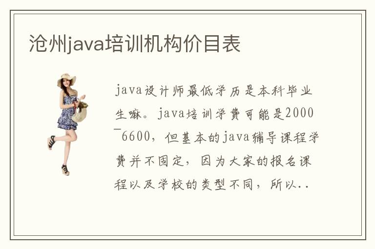 java设计师最低学历是本科毕业生嘛。java培训学费可能是2000~6600,但基本的java辅导课程学费并不固定,因为大家的报名课程以及学校的类型不同,所以说学费会存在有一点点差异。java作为一种面向对象的编程语言,是国内外网络编程技术人员最常用的手法。沧州Java工作者分为普通的和高端的,分类不同自然专业水平不同,自然薪资水平也就不一样了。当然这些只是理论,作为技术员,需要亲自动手,完成数据库开发等小项目,从而强化操作能力。你知道沧州java培训机构的排行榜吗。只要同学对编程语言的理论理解不够充分,可以报名一对一授课,老师把许多基础课程介绍给大家,让大家有更多时间理解。我想这些都是想要学习java专业或者是想要从事互联网java职业的人所关注的问题吧,下面我就来具体介绍介绍java工程师的薪资水平吧。