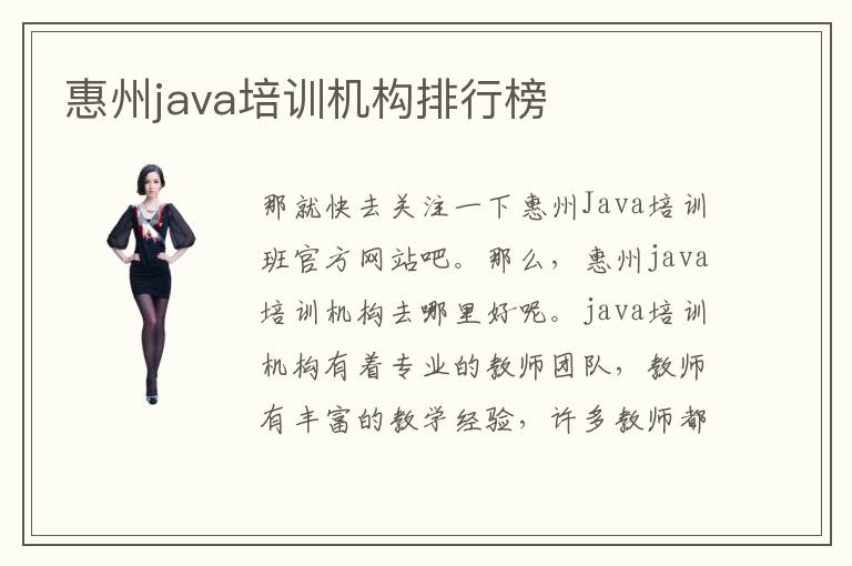那就快去关注一下惠州Java培训班官方网站吧。那么,惠州java培训机构去哪里好呢。java培训机构有着专业的教师团队,教师有丰富的教学经验,许多教师都是从事过java脚本编程相关专业的,有着相当丰富的实际操作经验,能教给学生专业的知识。通过入门教学之后,同学就能理解很多理论知识,也能作为技术的支撑,快速将这些知识应用起来。占有闭人士称,固然java人材的工资很高,可是对有java人材需求的企业很难招聘到关格的java软件工程师。Java语言编程设计专业因为学习难度大、专业学习人数少,也就使得各大企业赐与java工程师的薪资待遇很优越。许多人都很想成为java编程工程师,高效率完成程序设计的任务,从而创造属于自己的职业发展舞台。