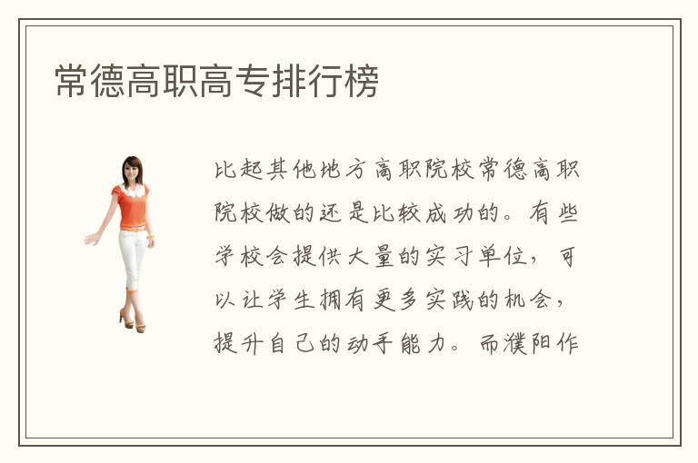 比起其他地方高职院校常德高职院校做的还是比较成功的。有些学校会提供大量的实习单位,可以让学生拥有更多实践的机会,提升自己的动手能力。而濮阳作为濮阳省的省城都会,是一个经济开发扶植都比较老练的大都会,关于专业技术型人材的培育认识也是很高的。常德高职院校好吗其实因人而异,有些人觉得自己的能力完全超过高职院校的水平,那么完全可以到大学就读。还有一些家长觉得这些学校的含金量不足,在就业的时候有时不明显,可能面临着一毕业就失业的风险,但如果是没有其他选项,那么多高职院校也应该是不错的选择。一些学生可能关于实际常识能够驾轻就熟,但是另有一部门学生更倾向于技术层面的研讨和学习。常德高职院校好吗,大多数学校都有错的,又是老师的水平比较高,而且专业更加优越,学习的过程中还要多结合自己的需求来考虑问题,而不是未来的就业形势。