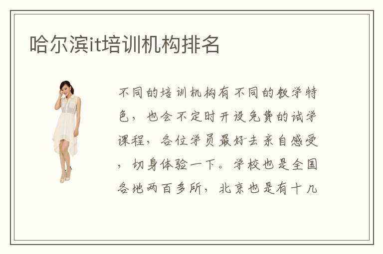 不同的培训机构有不同的教学特色,也会不定时开设免费的试学课程,各位学员最好去亲自感受,切身体验一下。学校也是全国各地两百多所,北京也是有十几家校区。不过同学不必忧虑,因为现如今有很多专业的学习途径,同学除了自学外,可以报名哈尔滨it培训学校,掌握重点的it技术和专业应用内容。很多同学已经在计算机专业的技术领域方面花了好多年的时间,但都没有深入的探讨和思考,进步是很不理想的。因为计算机专业发展很快,如果总是停留在过时的知识,很难跟上时代的节奏。it技术培训班靠不靠谱,大量的辅导机构都有严格的标准,每个阶段都有训练,若如果理解不够好,专业实力不够突出,老师会提供多种讲解方案,使大家随时取得突破。第三,就业办事体制。
