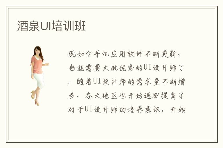 现如今手机应用软件不断更新,也就需要大批优秀的UI设计师了。随着UI设计师的需求量不断增多,各大地区也开始逐渐提高了对于UI设计师的培养意识,开始成立了很多家专业的UI培训机构。那么酒泉UI培训班的教学质量怎么样呢?在酒泉UI培训班学习UI设计专业后能不能顺利找到好工作呢?酒泉UI培训班坚持从基础教训,通过高质量的培训课程让各位学员可以学好UI设计。