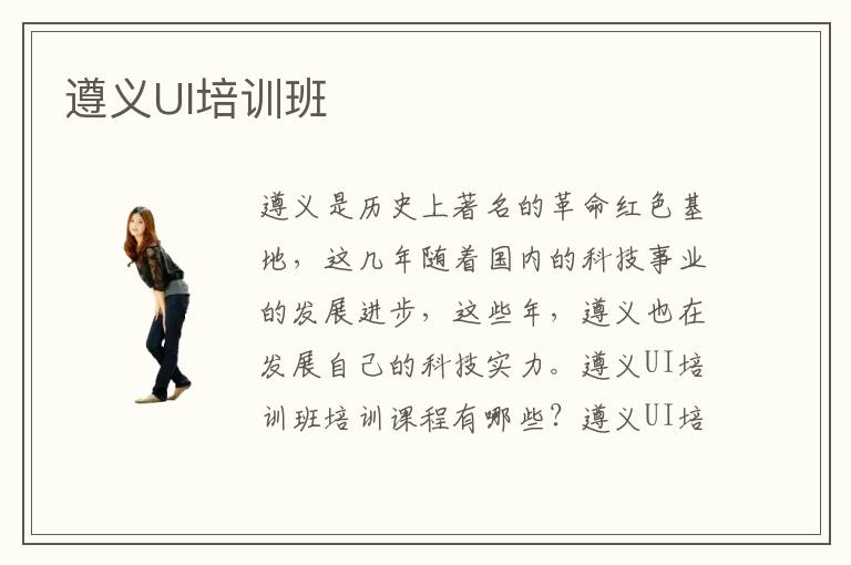 遵义是历史上著名的革命红色基地,这几年随着国内的科技事业的发展进步,这些年,遵义也在发展自己的科技实力。遵义UI培训班培训课程有哪些?遵义UI培训机构价格费用贵不贵?遵义UI培训设计有用吗?遵义UI培训机构一年的学习报名费用大概需要花费多少钱?遵义UI设计培训拥有丰富的教育资源,教学程度也是比较高的,教学质量还是值得期待的。