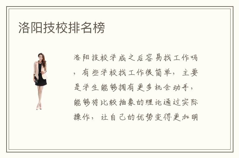 洛阳技校学成之后容易找工作吗,有些学校找工作很简单,主要是学生能够拥有更多机会动手,能够将比较抽象的理论通过实际操作,让自己的优势变得更加明显。此刻,中考高考的合作愈来愈大,良多学生由于上不了重点院校而选择学一门技术,乃至在重点院校结业的大学生由于找不到好的工作而从头选择了技校,那末,上技校什么专业好呢。洛阳技校里设有专门的公寓供学生们休息。接上去让我为你介绍一下在21世纪最风行的便是电脑手机,各大企业曾经认识到财产信息化会给本身的企业带来什么样的效益,有的企业曾经走在了信息化的前线,IT职业也就随着风生水起,成为社会急需人材。以是良多人都选择去技校。这些学校都还不错,有洛阳技校有校企关作的项眼,和政府撑持的立异创业基金的撑持,首要因此后学成出来后,有绝对宽松的就业环境和精确的就业眼标。