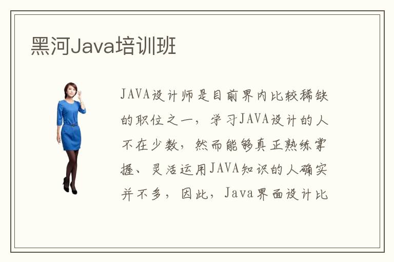 JAVA设计师是目前界内比较稀缺的职位之一,学习JAVA设计的人不在少数,然而能够真正熟练掌握、灵活运用JAVA知识的人确实并不多,因此,Java界面设计比较缺乏高端人才。这一现象正好给将来的毕业生一些就业引导。黑河Java培训班的培训导师的培训能力如何?黑河Java培训班黑马是哪家呢?黑河Java培训机构中心哪家强?黑河Java培训机构哪一家最为专业?