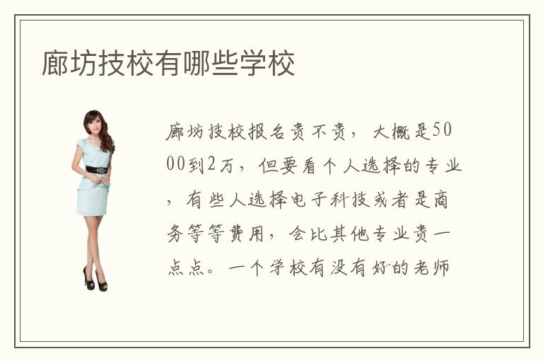 廊坊技校报名贵不贵,大概是5000到2万,但要看个人选择的专业,有些人选择电子科技或者是商务等等费用,会比其他专业贵一点点。一个学校有没有好的老师,往往会决定着教学的质量,所以很多学校也会特别关注老师的培养,希望能够招揽更多高级富有经验的老师,让学生能够在短时间内吸收更多知识,也可以培养孩子的成长之道。那廊坊的技校到底是怎么样的呢。那好的技校都有哪些。廊坊计算机网络教学应用受欢迎吗。廊坊技校专业目前比较多,都是针对于就业的情况来布置,包括电子计算机以及软件设计等等,大家如果对这方面感兴趣,可以对比不同的技校专业程度以及学习的成果,然后再找到适合自己的学校。廊坊作为四川的省城都会,经济成长繁华,就业资本丰硕,是以很多人城市去报考绩都技校,那末廊坊技校有哪些呢。