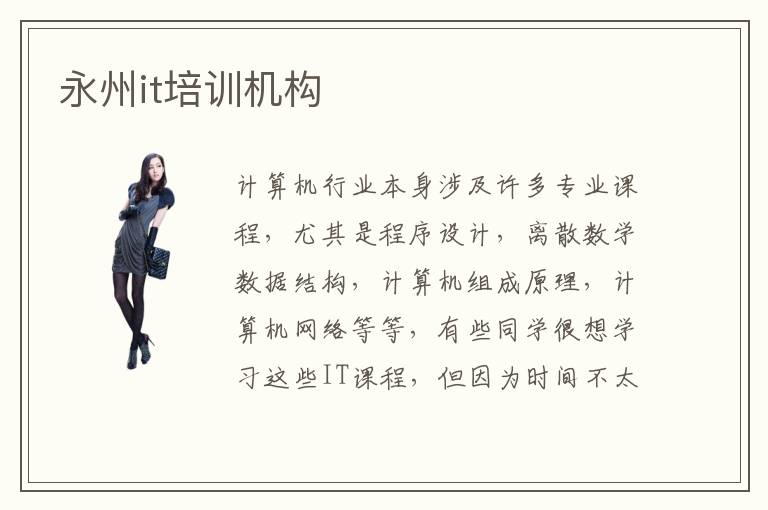 计算机行业本身涉及许多专业课程,尤其是程序设计,离散数学数据结构,计算机组成原理,计算机网络等等,有些同学很想学习这些IT课程,但因为时间不太充足,学习效率也比较低,很难在短期内有所突破。所以很多人都想要学习当今最受欢迎的技术,也就是IT技术,IT行业非常的吃香。所以越来越多的人都想要到永州it培训学校学习it技术。IT培训机构难度大不大,有很多课程内容都是存在一定难度,所以学生不要总是因为难度太高就放弃学习,而是要不断去挑战更多高端知识技术。永州it培训学校教学水平也非常高,所以在这儿学习的话可以学到非常多的专业性知识。要是学习中有不懂的疑问和难题,不妨马上向it专业培训班的老师提出,老师会给予相当清晰的介绍和剖析。