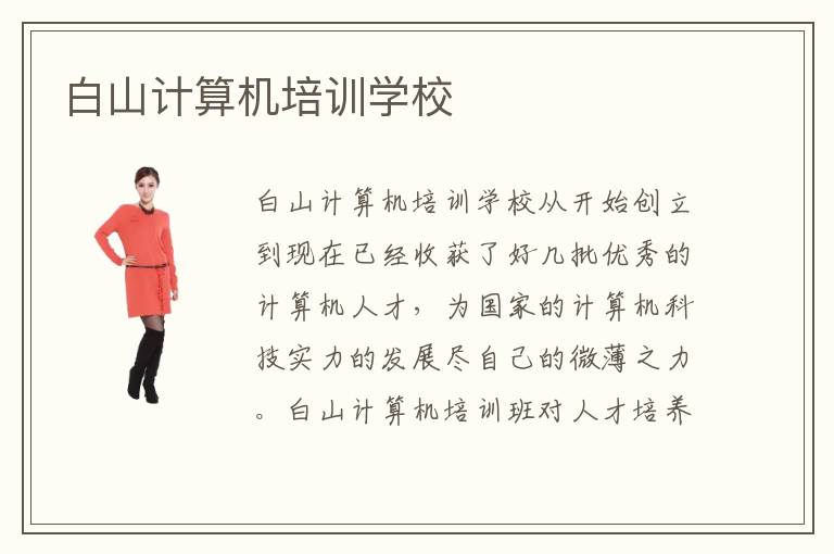 白山计算机培训学校从开始创立到现在已经收获了好几批优秀的计算机人才,为国家的计算机科技实力的发展尽自己的微薄之力。白山计算机培训班对人才培养计划有自己独特的教学解说,对计算机的教学也有独特的教育方式。白山计算机培训机构训练难易程度适中,总之,是适合大多数学生的教育学习机构。白山计算机培训班贵不贵?白山计算机培训班费用多少?