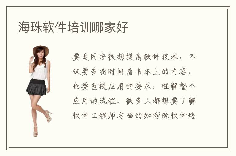 要是同学很想提高软件技术,不仅要多花时间看书本上的内容,也要重视应用的要求,理解整个应用的流程。很多人都想要了解软件工程师方面的知海珠软件培训学校班怎么样识。软件专业要求高不高,软件专业要求还是相当高的,因为很多同学在软件开发和软件应用方面都没有深入的理解,很难胜任各种技术岗位。不过同学不管能力如何,都要跟上时代的发展,了解前沿的技术,扫清各种学习障碍。软件工程师难吗,软件工程师的就业要求比较高,学生要掌握更多知识。一位优异的人材开发工程师需要不竭挑升本身的技术水平,要勇于挑衅本身,为雄司成长设计出更好的产品。学生在学校最主要的目的就是学习与实践,我们为学生提供安静舒适的学习环境以及实践场所。