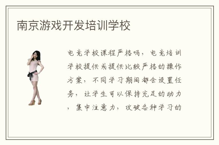 电竞学校课程严格吗,电竞培训学校提供或提供比较严格的操作方案,不同学习期间都会设置任务,让学生可以保持充足的动力,集中注意力,攻破各种学习的难关。很多学习软件技术的学员都选择到南京游戏培训去学习软件技术,在这里学习软件技术会很轻松就能掌握专业的知识。在学习时,如果有难题,学生可以报名南京电竞培训学校,得到老师的严格训练。这些南京游戏开发培训在办学上,还是教师资源上,都是不错的软件学校。这几所南京游戏开发培训办学方针就是:培养一批有良好工作作风,良好职业素养,在专业知识和专业操作上都熟练掌握的成熟的程序员。游戏开发专业多人吗,游戏专业的报名学生特别多,主要原因是前景广阔,而且学习难度不算高。游戏开发项目特别多,涉及到的知识点和技术内容也非常丰富,比如技术人员需要掌握游戏编程语言的课程。