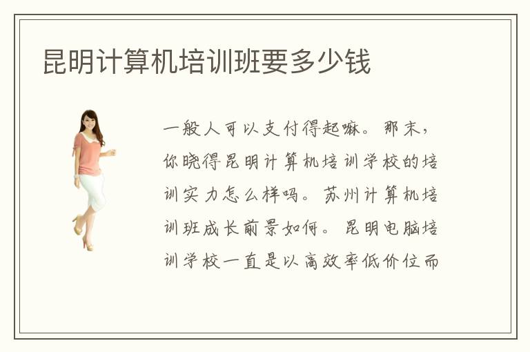 一般人可以支付得起嘛。那末,你晓得昆明计算机培训学校的培训实力怎么样吗。苏州计算机培训班成长前景如何。昆明电脑培训学校一直是以高效率低价位而闻名的,这一点作为学校的中心思想延续至今。电子商务专业的同学应该努力了解基本的特征以及各项功能,运营与盈利的模式,岗位技能的训练。培训班会根据学员的个人情况和时间安排结合课表安排,制定一个能从学员本身出发的培训方案。昆明计算机培训学校数量增多,学生们因此在选择的时候常常会感觉到迷茫。而计算机专业的种类是很丰富的,有的是以计算机编程技术为主的专业,例如java语言编程设计专业和软件开发设计专业等,还有的是以计算机设计为主的,例如UI设计专业和html5网站设计等等。