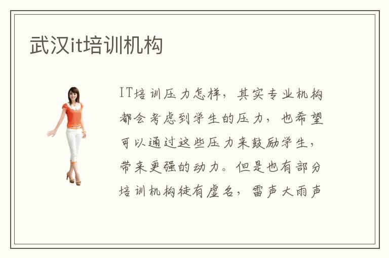 IT培训压力怎样,其实专业机构都会考虑到学生的压力,也希望可以通过这些压力来鼓励学生,带来更强的动力。但是也有部分培训机构徒有虚名,雷声大雨声小,经验不够丰富,教育水平也有限,IT培训机构专业资历不够突出,导致学习的竞争力不强。it行业的薪资比较高,也是吸引众多专业人员从事该行业的主要因素。每年在武汉it培训学校培训过的学员有非常的多。还想要快速的学会计算机技术,就得到武汉it培训学校学习。所以,学习it技术最好的方法就是到武汉it培训机构机构里面学习。有些学校可能在技术方面不太突出,经验也有限,那学生应该要尽可能避开这些学校。武汉IT培训学校通常给学员们安排的是四个月左右的专业培训课程,通过专业化的培训教学使得学员们在短期内可以有效的学好IT专业。