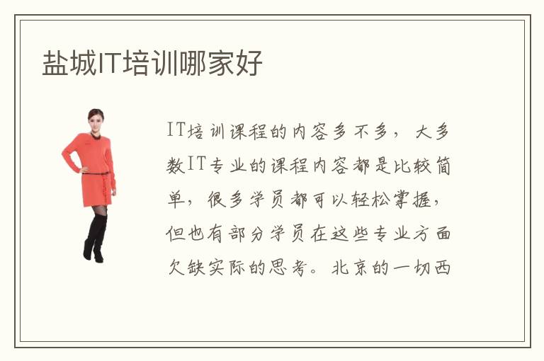 IT培训课程的内容多不多,大多数IT专业的课程内容都是比较简单,很多学员都可以轻松掌握,但也有部分学员在这些专业方面欠缺实际的思考。北京的一切西席都是青鸟体系的元老级教员,有着百万以上的项眼经历,充实具备作为一位IT行业指导人的才能。有越来越多的人想要学习计算机技术的,都选择到盐城it培训机构里面学习。所以,在全国都设立了很多计算机培训学校,同样,盐城也不另外。it工程师的工资可能在1万到3万之间,技术人员在能力不是很强的情况下,也可以获得1万元的月收入。这就是为什么有越来越多的人都会选择到盐城IT培训学校学习,因为在盐城IT培训学校是真的可以学到非常多的知识。IT培训业余班哪些更好,主要是看哪个机构的业务优势,教育能力以及专业水准等等。