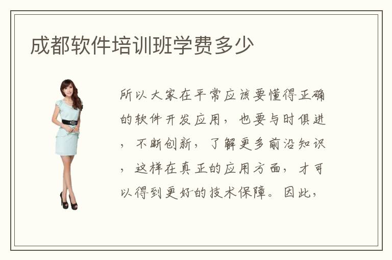 所以大家在平常应该要懂得正确的软件开发应用,也要与时俱进,不断创新,了解更多前沿知识,这样在真正的应用方面,才可以得到更好的技术保障。因此,选择一所各方面综合实力都比较强的成都软件开发培训机构才是学习这门专业最关键的第一步。要是同学理解不够深入或应用的水平比较差,都可以及时由软件老师安排课程,提高应用的实力。软件工程师在线课程很受欢迎,有很多学生都会报名,因为软件工程的技术难度比较高,学生不得不选择辅导班的课程。软件培训班的感化良多,代价很高。这个时候报名教育机构,学习老师指定的课程,便可以确定好方向,得到更多的收获,也能快速实现逆袭。软件专业怎样学习,学习软件专业的课程,首先要了解各种软件基础、软件程序以及软件应用、软件设计流程。