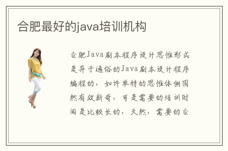 合肥Java剧本程序设计思惟形式是异于通俗的Java剧本设计程序编程的,如许单特的思惟体例固然有效新奇,可是需要的培训时间是比较长的,天然,需要的合肥Java培训班学费就会比一般情况更多,只是如许的学习培训还是很有必要的。合肥java培训机构费用大概需要一万元以上两万元以下,分歧的java培训机构收费标准会有所分歧,分歧的java培训机构也会形成分歧的学习结果。合肥地域Java设计工程师是比较疏缺的,以是工资待遇比较吸收人。java好用吗,java当然有应用价值,首先就是应用的过程比较轻松,代码非常简洁,大大提高准确度和稳定性。总体来说大多数学校的技术要求都不同,优势也不太一样,学生选择之前,要综合去判断,找到自己心仪的辅导机构。