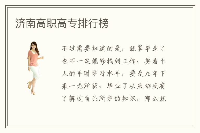 不过需要知道的是,就算毕业了也不一定能够找到工作,要看个人的平时学习水平,要是几年下来一无所获,毕业了从来都没有了解过自己所学的知识,那么就业的难度会非常大。在大多数人看来,高学校可能专业水平并不是特别高,学生花了几年,可能一点作用都没有。济南峡高职院校就业优势通常是比较好的,一方面就是高职院校的专业通常非常热门,而学生针对自己的专业适当加以锻炼,每天都有足够的时间进行巩固,提升专业的优势,那么就业往往会非常简单。济南高职院校里的课程也都非常的多,也可以丰富你自己。济南高职院校的入学门槛是相对于其他大学高校来说比较低的,济南高职院校比较重视的是对于学员们的专业技术培养,对于学员们的入学成绩是没有过多要求的。
