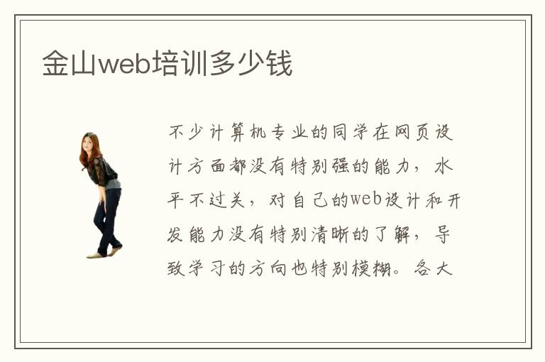 不少计算机专业的同学在网页设计方面都没有特别强的能力,水平不过关,对自己的web设计和开发能力没有特别清晰的了解,导致学习的方向也特别模糊。各大企业对于官方网站的建设成立都是比较重视的,因此学好web网站前端设计专业课程对于今后在计算机企业就业工作是很有帮助的,可见网站前端设计专业的就业前景很广阔。金山地域WEB前端培训机构哪家优异。web前端培训机构压力其实是不太大的,因为老师会适当通过有趣的授课方案,帮助学生了解知识点,而且短时间内看到web前端的应用成果,也会更有动力去克服各种挑战。凡是在这里学习过做网站技术的学员都说挺不错的。金山web前端培训机构选择方式,要看辅导的技能、专业优势、课程方案以及辅导内容。