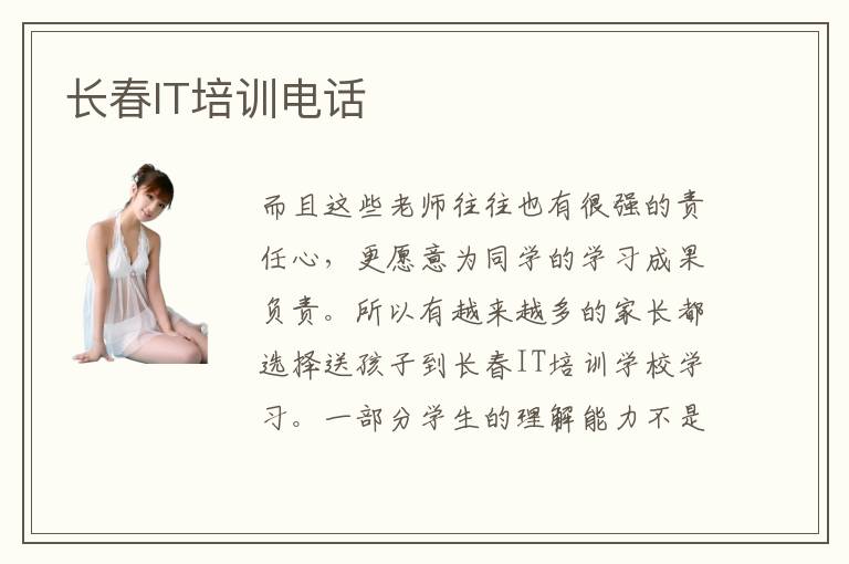 而且这些老师往往也有很强的责任心,更愿意为同学的学习成果负责。所以有越来越多的家长都选择送孩子到长春IT培训学校学习。一部分学生的理解能力不是很强,学习思路不够开阔,感觉负担特别重。在这里学习过后,你不会不感谢长春IT培训学校。长春it培训班非常多,有部分学校的教学方案很完整,可以帮助同学整理很多领域的知识,包括计算机开发、计算机软件设计、计算机编程。计算机行业本身就有很多应用领域的内容,可是不少同学没有真正学习应用,就是只关注理论,因此工作的优势并不理想,遇到很多简单的应用都无法解决,难以发挥个人价值。若想提高专业水平,完成更多工作项目,可选择辅导机构的课程。并且,在全国,电脑技术发展迅速的前提下,各地都建有大规模的电脑培训学校,其中长春也不例外,长春it培训学校就有很多很多。
