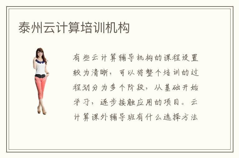 有些云计算辅导机构的课程设置较为清晰,可以将整个培训的过程划分为多个阶段,从基础开始学习,逐步接触应用的项目。云计算课外辅导班有什么选择方法,筛选辅导班的时候,大家要关注每个学校的专业的水平,老师的优势,教学口碑等等因素。现在在学习过程中会存在一点点压力,但是大家也不要总是觉得压力是不好的东西,其实只要适当调整还是很容易发挥出云计算的进步成果。所以在泰州云计算培训云计算培训班里面学习的话,完全可以放心,一定能学到专业的知识。大家如果想要报名云计算机构那么可以多关注泰州云计算培训机构排名,了解排名靠前的培训机构类型。一般培训机构费用都在1万到2万左右。泰州云计算培训电话,有的学员为了提高能力,得到更好的薪资,会聘请一两名培训老师,学习核心的技术。