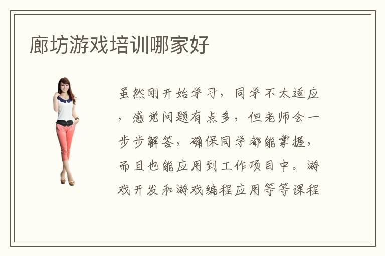 虽然刚开始学习,同学不太适应,感觉问题有点多,但老师会一步步解答,确保同学都能掌握,而且也能应用到工作项目中。游戏开发和游戏编程应用等等课程都很受欢迎,原因就是许多计算机专业都想成为一名游戏开发工程师和游戏设计师,得到更高的薪资待遇和更广阔的发展舞台。据了解有达内教育,中软卓越,达内教育,甲骨文以及中软卓越。游戏专业有哪些岗位,可应聘游戏专业开发,游戏美工设计,人物设计,装备设计,三维动画制作,广告后期合成制作,影视特效制作等岗位。为了改善游戏开发专业的应用水平,同学可以考虑报名廊坊游戏开发培训机构,理解各种层面的知识,尝试独立完成游戏开发的项目。而且学校会严格把控教学的质量,提供精确的辅导课程,结合工作应用要求,不断完善同学的技能优势。