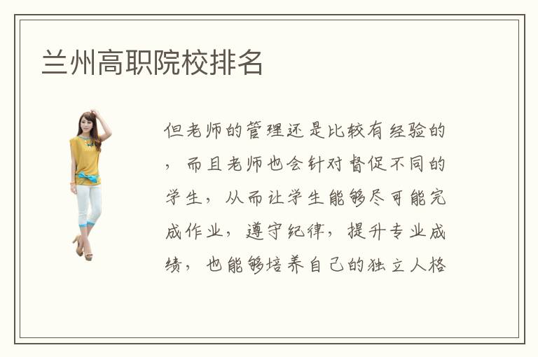但老师的管理还是比较有经验的,而且老师也会针对督促不同的学生,从而让学生能够尽可能完成作业,遵守纪律,提升专业成绩,也能够培养自己的独立人格。如今越来越多人选择到高职院校就读,一方面是认为大学只是传统的照本宣科,也没有专业的技术。兰州高职院校值得选择吗,要看个人的能力,如果学习成绩一直都比较容易,那么完全是可以到高中或者是知名的大学就读,但如果成绩一般而且高考失败或者是缺乏一技之长,那么可以到高职院校改善能力,就业的环境中依然保持领先的优势。兰州高职院校首要开设了哪些专业课程呢。兰州高职院校具有一流的讲授团队,在课程培训体例上重视实践与实际相连系,是以兰州高职院校的在校学生能够在将来的就业进程中加倍顺遂。