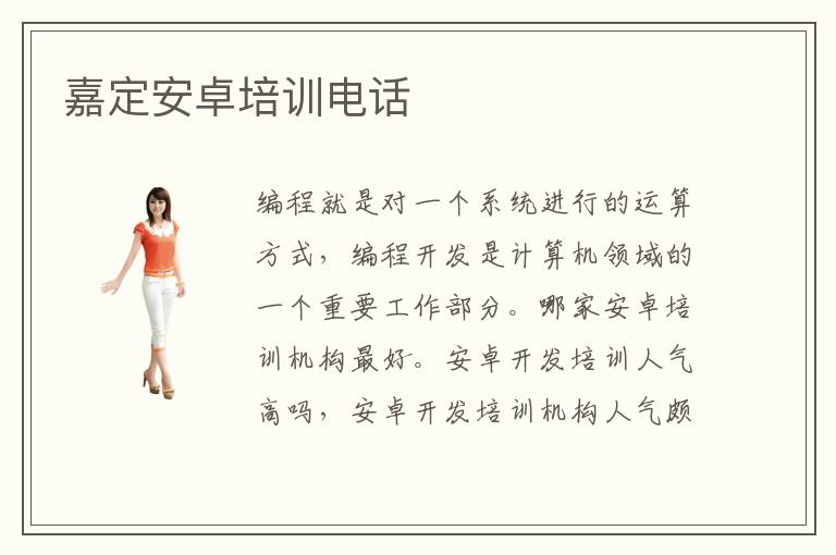 编程就是对一个系统进行的运算方式,编程开发是计算机领域的一个重要工作部分。哪家安卓培训机构最好。安卓开发培训人气高吗,安卓开发培训机构人气颇高,老师很关注学生的进展,选择个性化教学方法,使大家的学习效率有更大的提升。andriod开发培训班以就业为导向,在包管学生杰出就业率的情况下,让更多人获得常识的辅助。达内安卓培训机构讲授水平好吗。安卓培训班千锋培训价目表参考在哪里可以找到。有的同学很想在学习安卓开发专业的知识,取得更多职场工作的机会,但有些应用的要求比较高,学习的难度也有点大,导致学生对这些课程的理解不太充分,可能会面对很多学习问题。而嘉定安卓培训就都非常的专业,他们每年培养的人才不在少数,所以想把软件开发技术学的更好一些就得去嘉定安卓培训学习,嘉定安卓培训虽然有很多所但是他们的教学模式都是比较统一的,所以来嘉定学习软件技术完全可以放心。