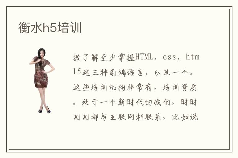 据了解至少掌握HTML,css,html5这三种前端语言,以及一个。这些培训机构非常有,培训资质。处于一个新时代的我们,时时刻刻都与互联网相联系,比如说我们工作,学习和生活都离不开电脑,而我们在使用电脑的同时,同样离不开网页。同时,网页也是构建网站的基本元素,充斥着我们日常生活中的点点滴滴。衡水html5培训机构还是有的而且不少,在衡水html5培训就是一个很好的选择。衡水h5培训培训班,培训水平非常的高。而且这里面的,教师也都是非常有责任心的。我们一一来说:首先衡水html5培训还是一个非常不错的选择,由于衡水市是贵州省比较发达的城市,政府和国家为了城市更好的发展,大力加强各领域的建设,html5行业也被寄予了很大的期待值。