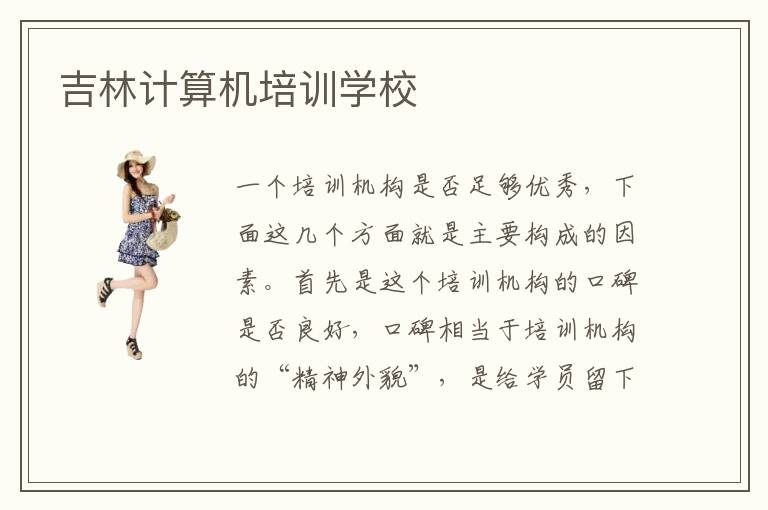 一个培训机构是否足够优秀,下面这几个方面就是主要构成的因素。首先是这个培训机构的口碑是否良好,口碑相当于培训机构的“精神外貌”,是给学员留下的第一印象。其次是去了解这家培训学校的师资团队是否强大,坚信只有名师才能出高徒。最后还有一点需要了解,那就是这家培训机构的学员就业率怎么样。这些因素也是进行吉林计算机培训学校排名投票,最主要的几点。