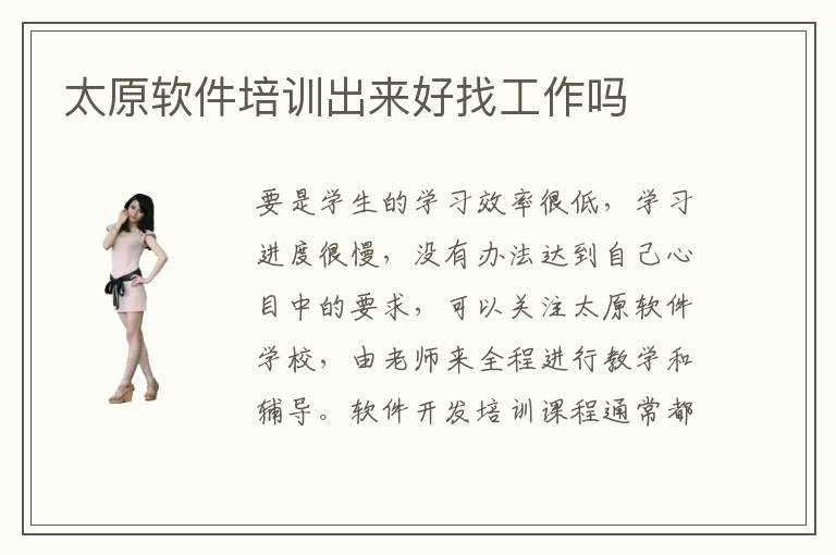 要是学生的学习效率很低,学习进度很慢,没有办法达到自己心目中的要求,可以关注太原软件学校,由老师来全程进行教学和辅导。软件开发培训课程通常都比较有用,很多同学刚开始接触,连基本的知识理论框架都没有,学习过程很难找到合适的方向,但得到太原软件开发培训老师的教学后,同学便可迅速了解软件开发的技术内容和应用方法,从而快速成为比较专业的软件开发工程师。软件编程教育机构在线课程有用吗,在线辅导课程非常实用,尤其是一些同学家里离辅导班不太近,如果每天都要大量的时间上下课,会浪费许多时间。也恰是由于太原软件开发培训学校以软件开发设计课程开设为主,这才关于软件开发设计这门专业的培训更存在针对性,从而学生们也能更安心的在太原软件开发培训学校接管讲授。