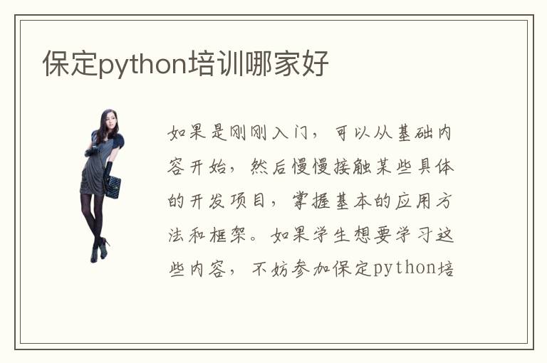 如果是刚刚入门,可以从基础内容开始,然后慢慢接触某些具体的开发项目,掌握基本的应用方法和框架。如果学生想要学习这些内容,不妨参加保定python培训,老师有严格的要求,会为学生制定不同阶段的课程,使学生拥有许多进步。那么可以考虑保定Python培训就业班,老师可以通过很专业的讲解方法,让学生可以充分吸收Python培训就业班教学内容,提高Python应用的价值。上地pyrhon培育班培训水平非常的高。若想寻求突破,但是没有合适的方法,都可以看看保定python培训费用,选择一些性价比高、质量有保障的培训课程,节约大量的精力和时间。有些同学没有分析辅导机构的优劣之处,找到一些不好的辅导班,成绩可能受影响。